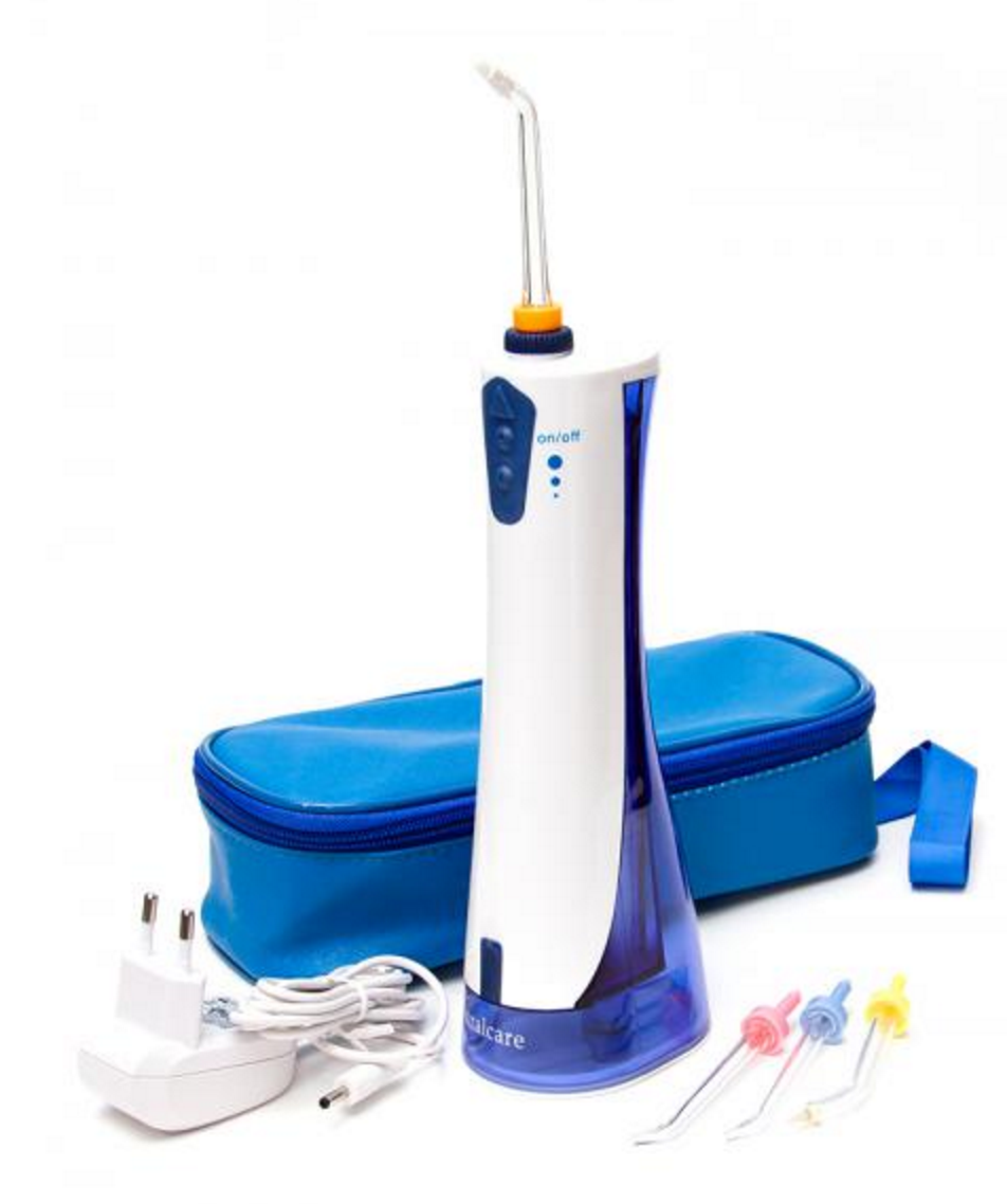 • Удобный портативный ирригатор BD2021B. Работает от аккумулятора, который предварительно заряжается от сети.