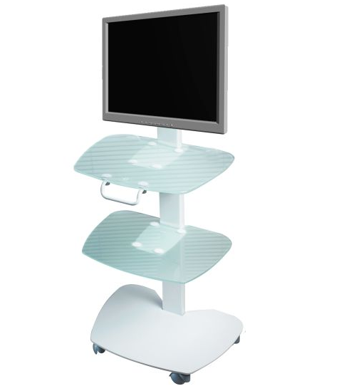 -Столик стоматолога вспомогательный "Дарта 1315" (стеклянный, прямоугольная стойка под моноблок), (Россия)